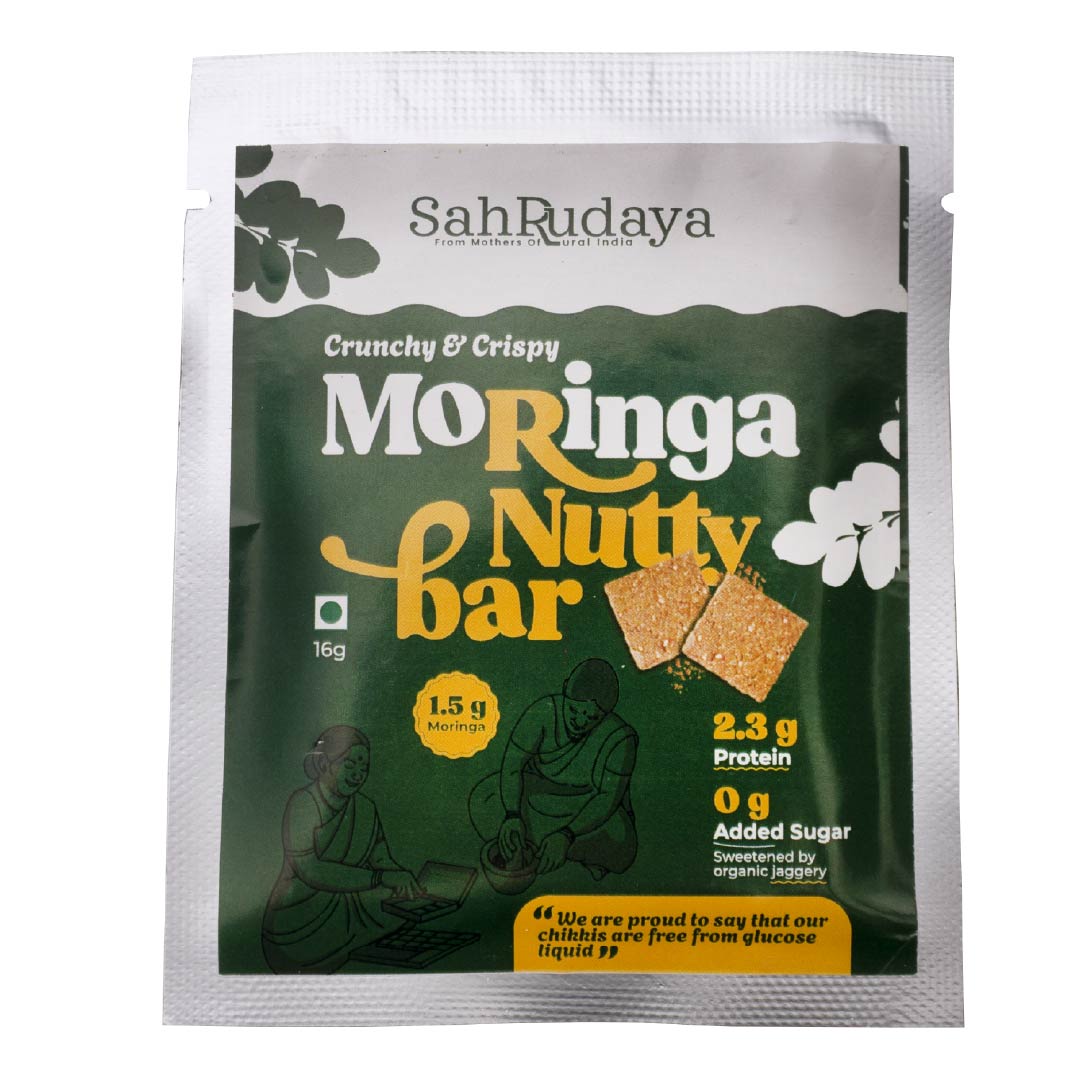 At Sahrudaya, we bring this wisdom into a pure jaggery-based chikki, handcrafted with native nuts, seeds, and solar-dried moringa leaves. No refined sugar, no shortcuts, just a humble, nutrient-rich bar that connects the science of Ayurveda with the simplicity of village kitchens. It’s more than a snack; it’s a reminder that true nourishment often comes from the most thoughtful pairings.